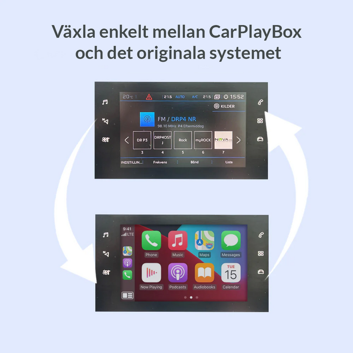 Control the CarPlayBox with the original controls of your Peugeot. Switch between CarPlay, Android Auto, and your original system with the press of a button.