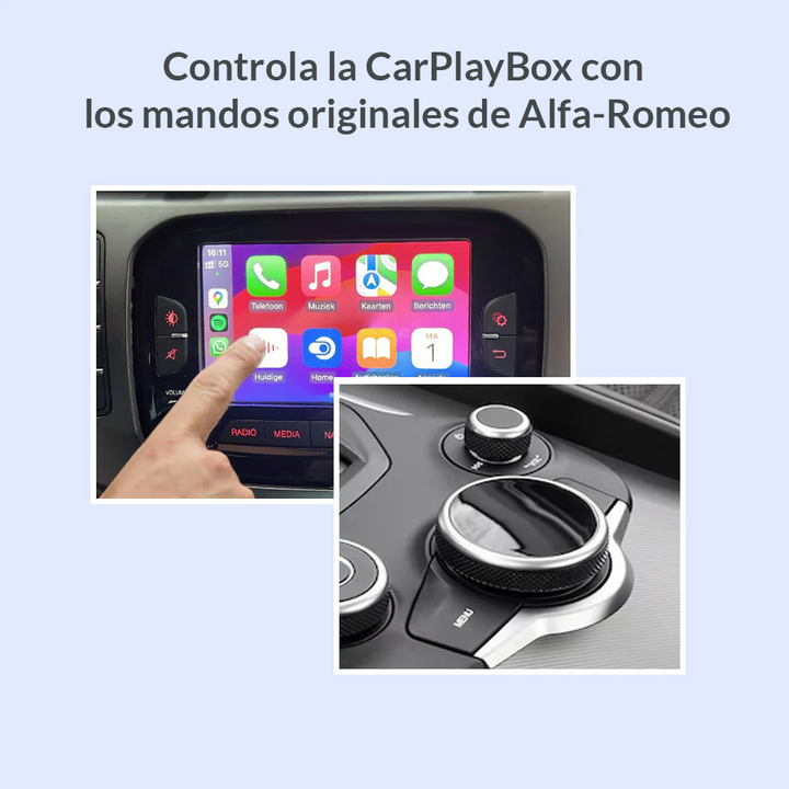 Control the CarPlayBox with the original controls of your Alfa Romeo. Switch between CarPlay, Android Auto, and your original system with the press of a button.