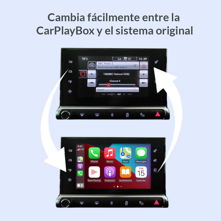 Control the CarPlayBox with the original controls of your Citroën. Switch between CarPlay, Android Auto, and your original system with the press of a button.
