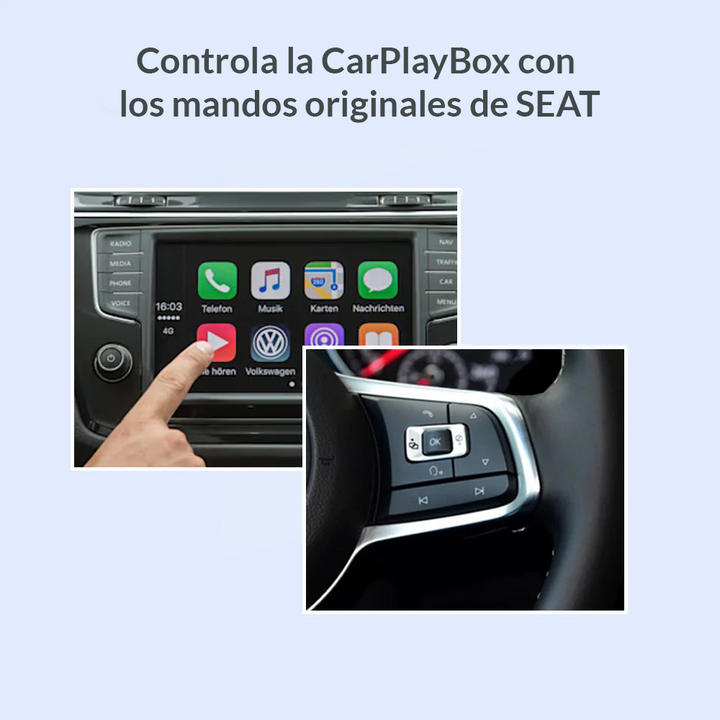 The CarplayBox from CarOptions integrates seamlessly with the infotainment system of your SEAT for Apple CarPlay, Android Auto.