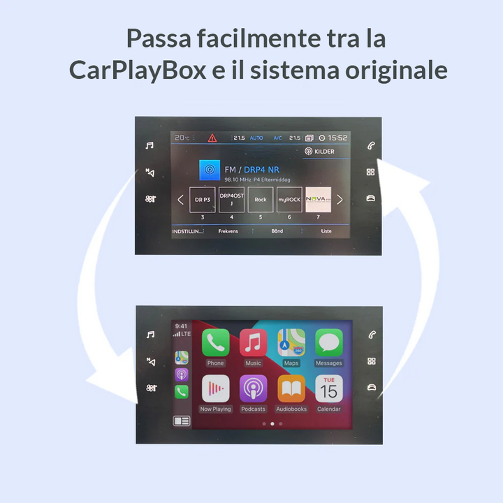 CarPlayBox is easy to install, placed discreetly behind the infotainment system, and starts automatically when you enter the car, without manual actions.