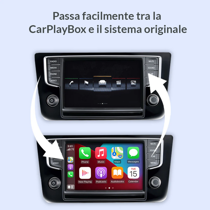 CarPlayBox is easy to install, placed discreetly behind the infotainment system, and starts automatically when you enter the car, without manual actions.