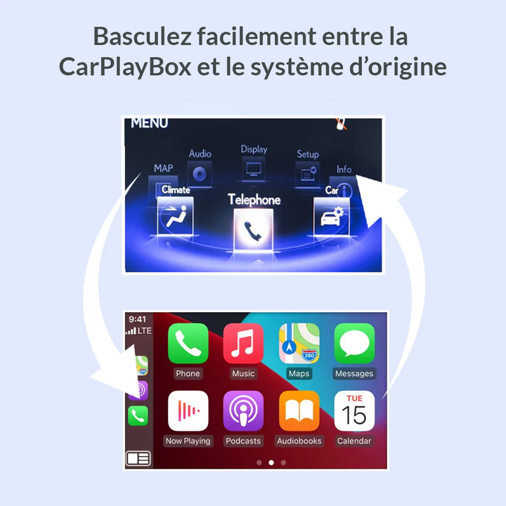 CarPlayBox is easy to install, placed discreetly behind the infotainment system, and starts automatically when you enter the car, without manual actions.