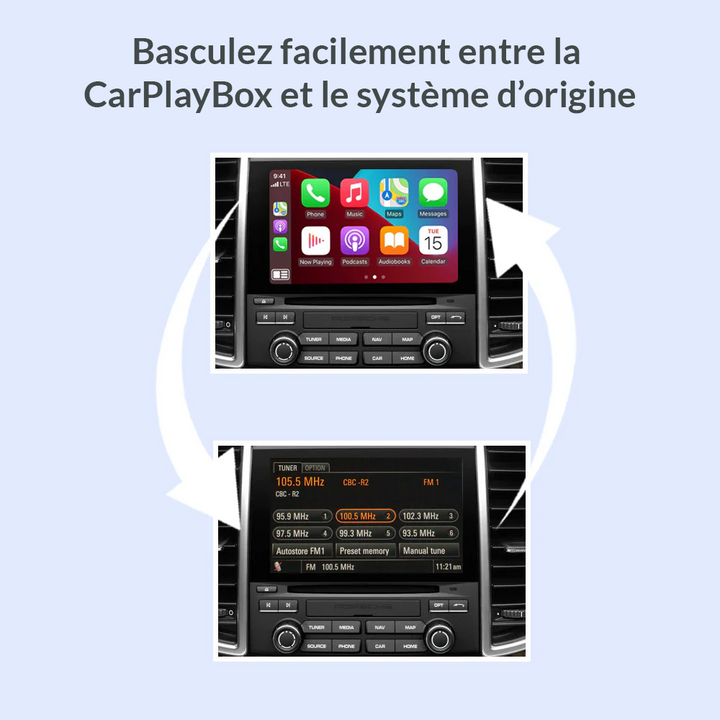Control the CarPlayBox with the original controls of your Porsche. Switch between CarPlay, Android Auto, and your original system with the press of a button.